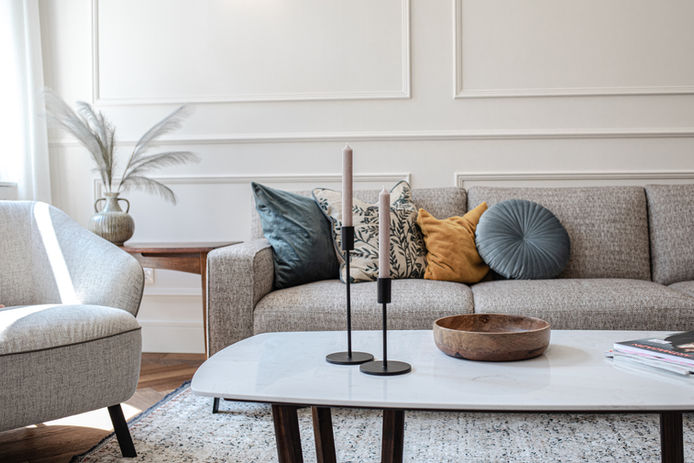 This 3rd-floor apartment (accessible by elevator) has been thoughtfully designed in a modern, tasteful style with clean lines and warm tones.
